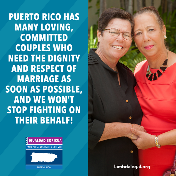 In declining to further defend the Commonwealth’s discriminatory marriage ban, Puerto Rico’s government finally recognizes that denying marriage to LGBT people is harmful and cannot be justified. The marriage ban’s sole purpose is to perpetuate discrimination, and it is just plain wrong. Same-sex couples, LGBT people and their families are part of Puerto Rico’s rich social and cultural fabric. Today’s actions fulfill the constitutional promises of justice and fairness for LGBT people in Puerto Rico. Simply put, discrimination is never in Puerto Rico’s best interests.
