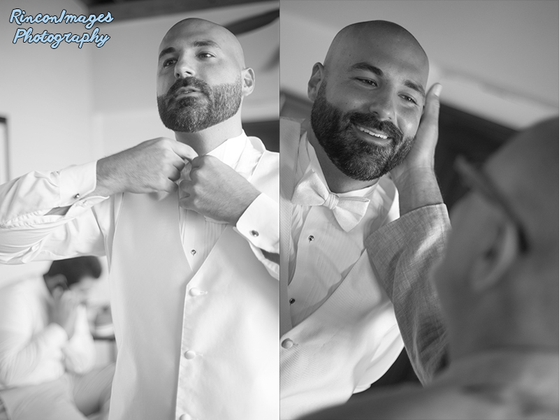 Bridesmaid Bouquets, Orange and White RosesFlower girl dressesBrookes beautiful vintage wedding dress.Evan, the groom, getting ready before the ceremony.Brooke with her sister before the ceremonyBrooke peeking out her balcony window over looking sandy beach in Rincon.