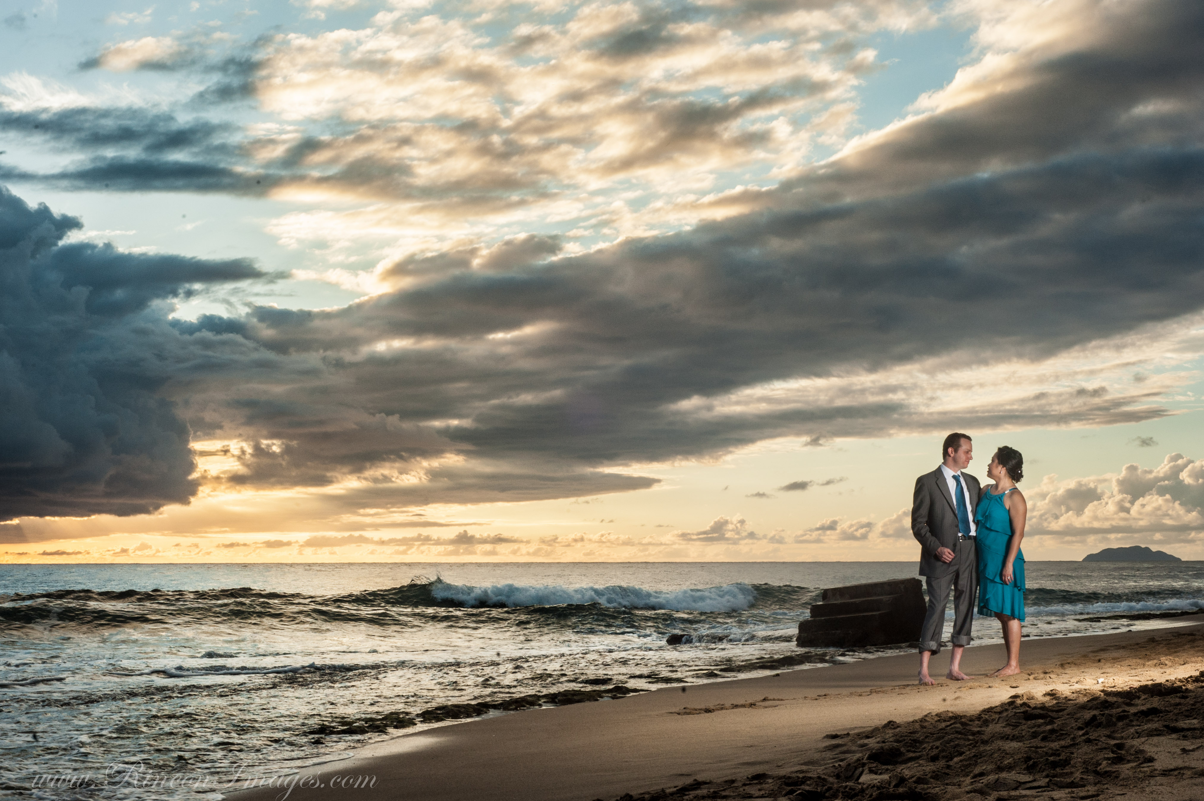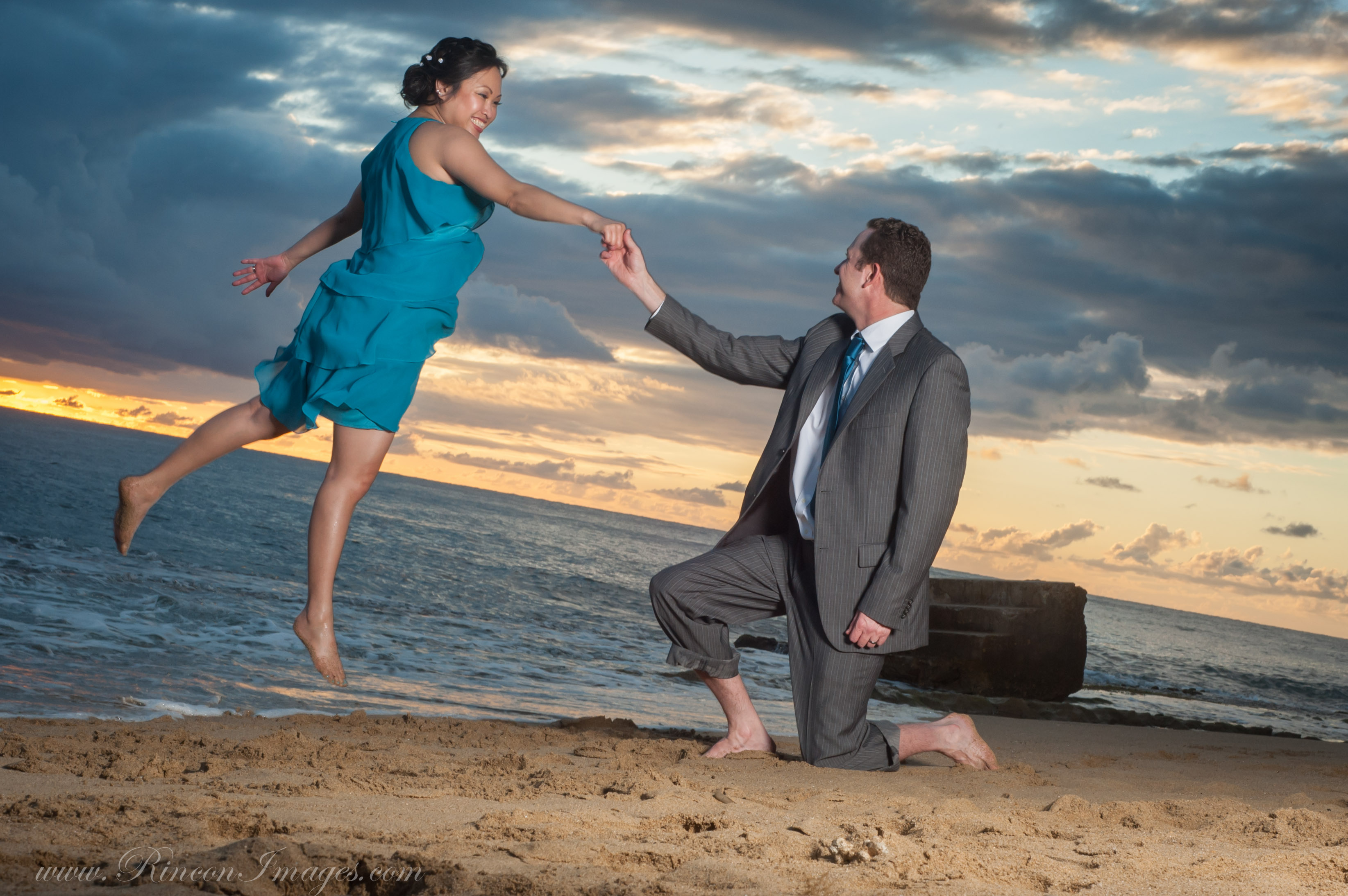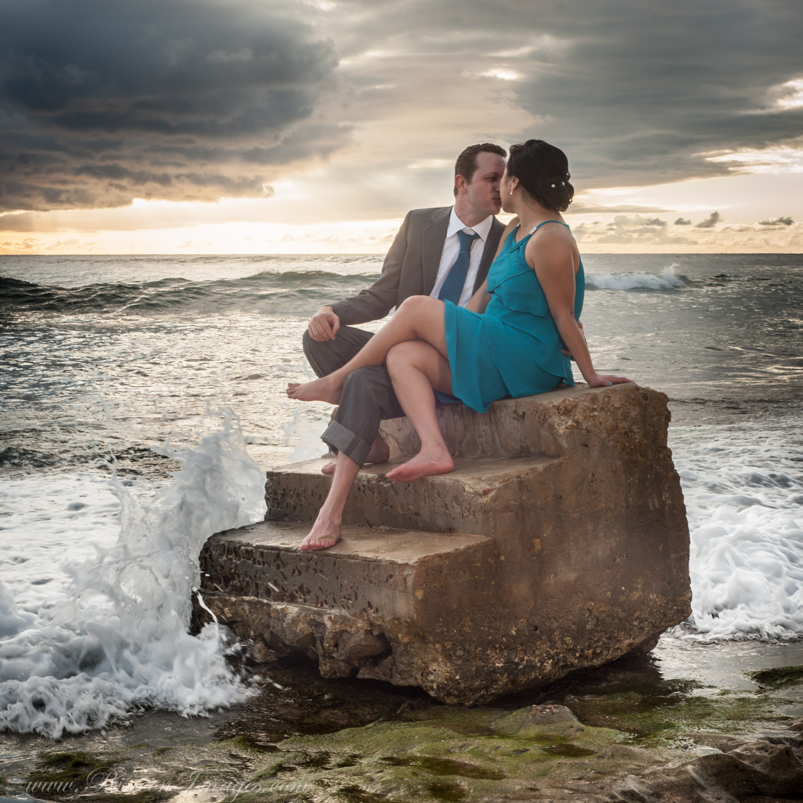 The bride and groom with their vows at Pools Beach in Rincon, Puerto Rico.Oh reading her wedding vows to her groom.Wedding photographer Rincon Puerto Rico.A romantic black and white wedding photograph I did of Drew and Oh at Pools Beach.That magic moment on the steps just as the waves start to roll in! I love wedding photographs like this that really capture those special moments.The teal ocean waves rolling in at Steps beach in Rincon Puerto Rico. There were only little baby waves the day we had our photography session. When a swell is in the waves in Rincon can reach up to 20ft.The gorgeous view from Steps beach in Rincon, Puerto Rico. What a beautiful place to do wedding photographs.I love this fun jumping photograph. I love taking these pictures because you never know exactly what you will get when someone is in mid air.A photograph of Drew jumping. This one reminds me of something from a Disney movie. They both had a lot of fun playing in front of my camera.Sunset Romance… we couldn’t have asked for a better way to end our photo session than with a gorgeous Rincon sunset.The off camera lighting really helps make this photograph look like something out of a magazine. I absolutely love my alien bees for doing pictures on the beach at sunset.This last photograph is one I did pointing my camera directly into the soft box. I love being able to use studio lights outdoors. This technique is quickly becoming one of my signature shots.